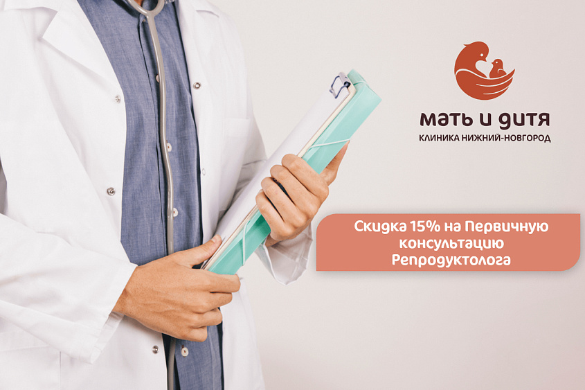 В Клинике «Мать и дитя» Нижний-Новгород вы сможете получить первичную консультацию врача репродуктолога со скидкой 15% - 2805 руб. вместо 3300 руб.